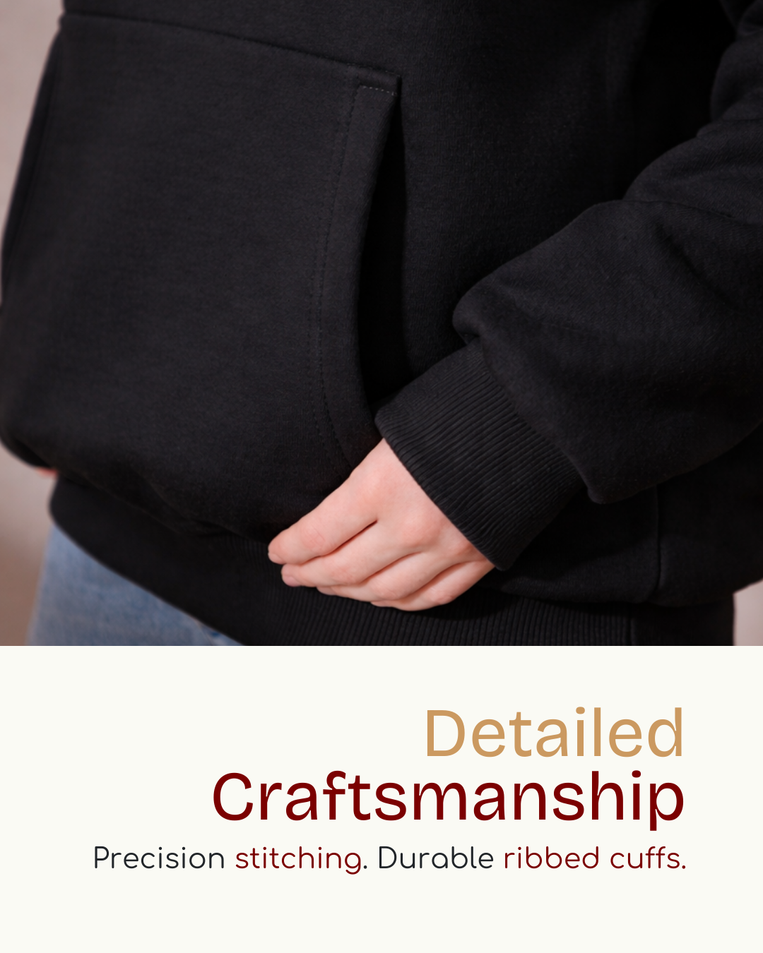 The deep black base creates a strong foundation, while the bold red Humanica logo adds sharp contrast and unmistakable identity. Finished with durable ribbed cuffs, a structured hood with white drawstrings, and a spacious kangaroo pocket, this piece blends street presence with premium construction.
